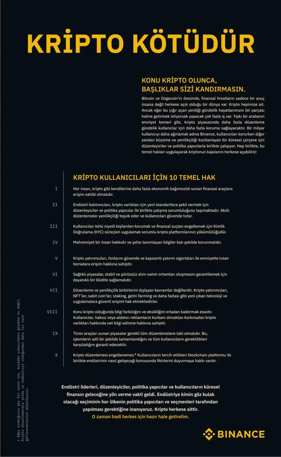 Binance'den ‘Kripto Kullanıcıları için 10 Temel Hak’