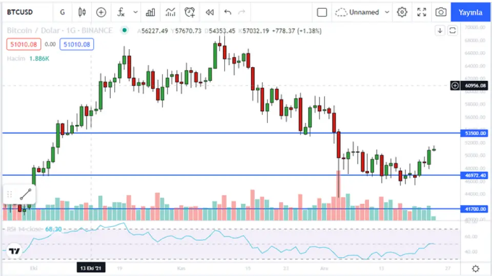 " BTC olumlu hava devam ediyor.50600 civarı yatay bir minör destek üstünde kaldığı sürece 53500 koşusunu devam ettirebilir.53500 üstündeki kapanışlarda boğalar daha da iştahlı hale gelebilir." demiştik.
