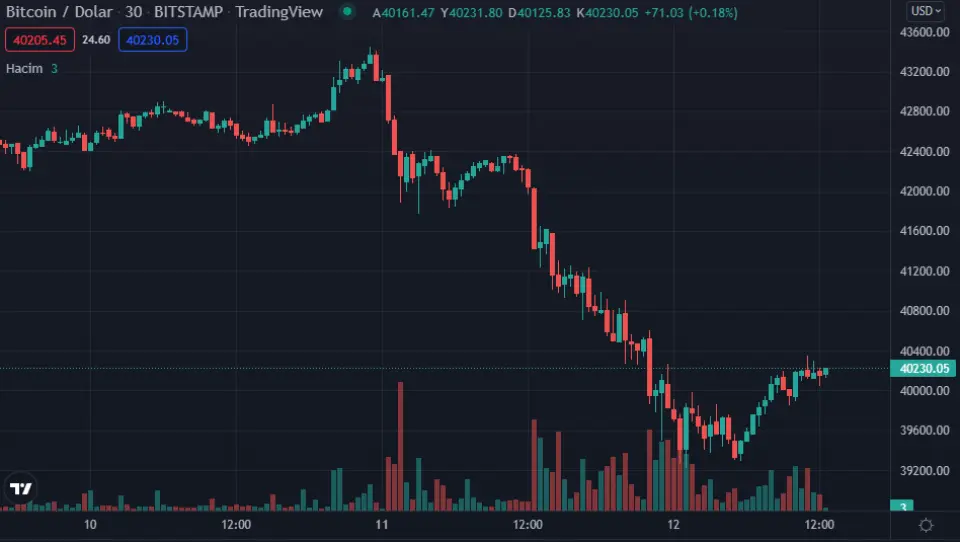 Lider kripto para birimi olan Bitcoin geçtiğimiz gün öğlen saatlerinde ciddi bir düşüş yaşadı. Dün öğlen saatlerinde 41 bin dolar seviyelerine kadar geriledi haber yazımı esnasında 40bin dolar bandında oynuyor. Yaşanan bu düşüş diğer alt coinleri de çok ciddi etkiledi. Ethereum düne göre %3.34 düşüş ile 3 bin dolardan değer görürken, BNB %1.07 düşüş ile 407 dolardan, Solana %3.63 düşüş ile 103 dolardan, Cardano ise %4.27 düşüş ile 0.9 dolardan değer görüyor.