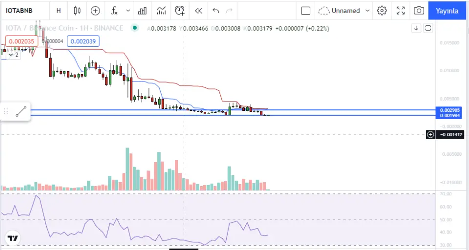 #IOTA tarihi dip seviyelerinde. 1984 altı kapanışlar grafiği olumsuz etkiler. Hacim artışı ile bir pump gelebilir. Takip edlimeli. #ıotabnb #MIOTA