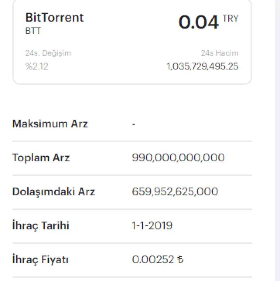 BitTorrent Token, Tron Vakfı ile BitTorrent Vakfı’nın ortaklığı ile ortaya çıkarılmıştır. BitTorrent’in ICO’su 2018 yılının sonunda tamamlanırken, 2019 yılının Ocak ayı itibariyle kripto para platformlarında listelenmeye başlamıştır.
