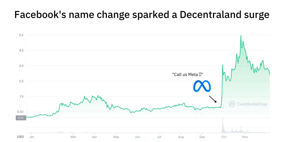 Decentraland'ın tokeni MANA, bu yükselişi yansıttı. Geçen yıl boyunca fiyatı %4,100'den fazla değer kazandı.