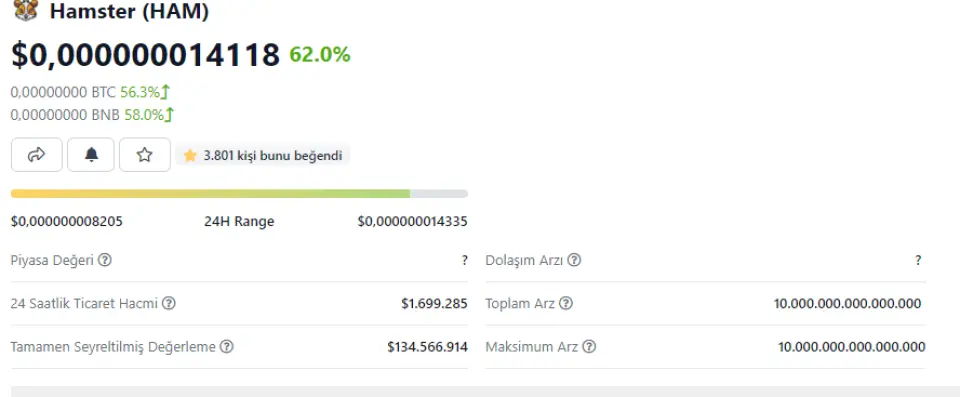 - Tweet sonrası Hamster fiyatındaki artış %62 seviyesinde oldu.