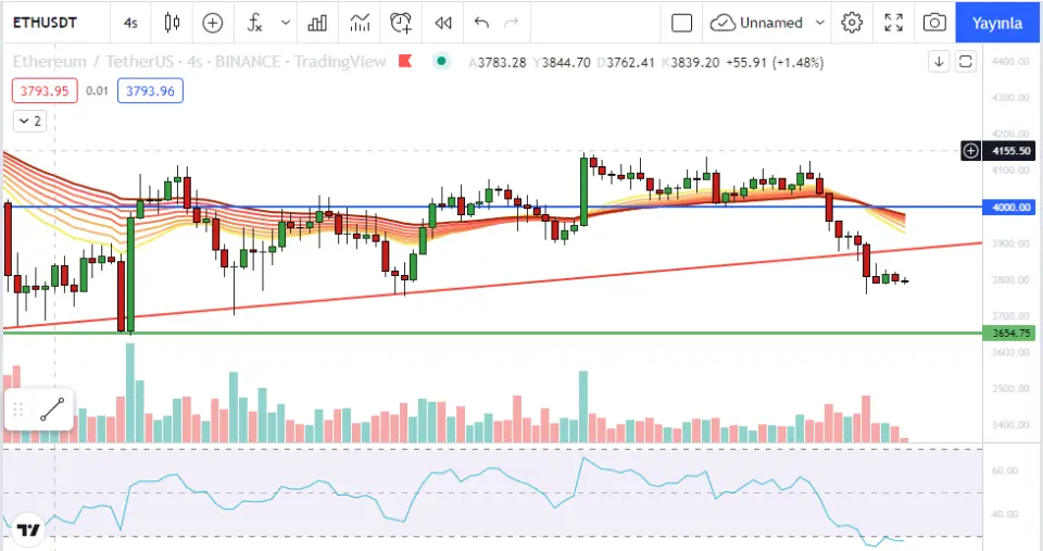 Ethereum 4 bin doların altına düşerken, balinalar satışta, teknik analizi ve yorumu