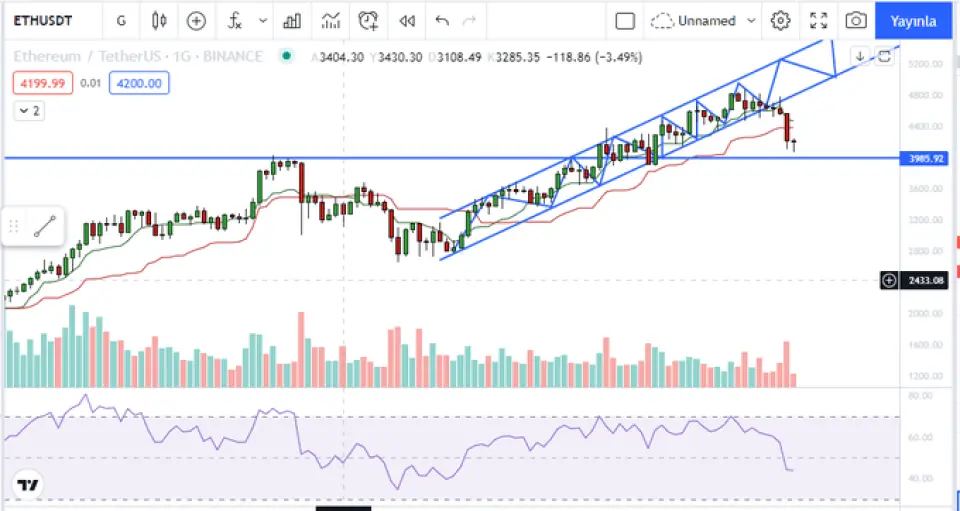 ETHEREUM (ETH) günlükte satış baskısı mı yiyor? Ethereum'un günlük grafikte çok satıcısı olduğunu görüyoruz. Ethereum satış baskılarına dayanabilecek mi? 4000 $ testini gerçekleştirebilecek mi?