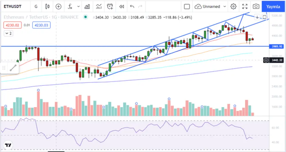 ETHEREUM (ETH) yükselişe başlayabilecek mi? Ünlü analistimiz kryptoturk ‘ün grafik yorumlarıyla ETHEREUM (ETH) günlük grafikte yükselişe başlayabilecek mi?