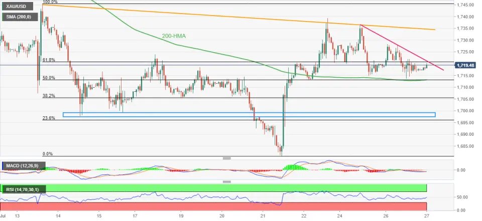 1.720 dolarlık direnç birleşmesinin yukarı yönlü kırılması, boğaları ikna etmeden önce XAU/USD’yi 1.735 dolar civarında iki haftalık bir direnç çizgisine yönlendirebilir. Aksine, 200-HMA ve %50 Fibonacci geri çekilme seviyesi, değerli metalin kısa vadeli düşüşünü yaklaşık 1.713 dolar ile sınırlandırıyor. Bunu takiben, 14 Temmuz’dan itibaren 1.700-1697dolar civarındaki yatay bir alan, altın satıcılarını yıllık en düşük seviye olan 1.680 dolara yönlendirmeden önce araştırabilir. Genel olarak, son zamanlarda hafifleyen düşüş eğilimine rağmen altın fiyatları baskı altında kalmaya devam ediyor. (kripto koin)