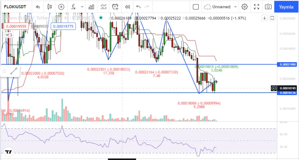 FLOKİ TOKEN desteğe tutunmuş. Yeni test mi geliyor? Ünlü analistimiz kryptoturk ‘ün grafik yorumlarıyla FLOKİ 4 saatlik grafikte destek almış gibi. Yeni seviye testi mi geliyor.