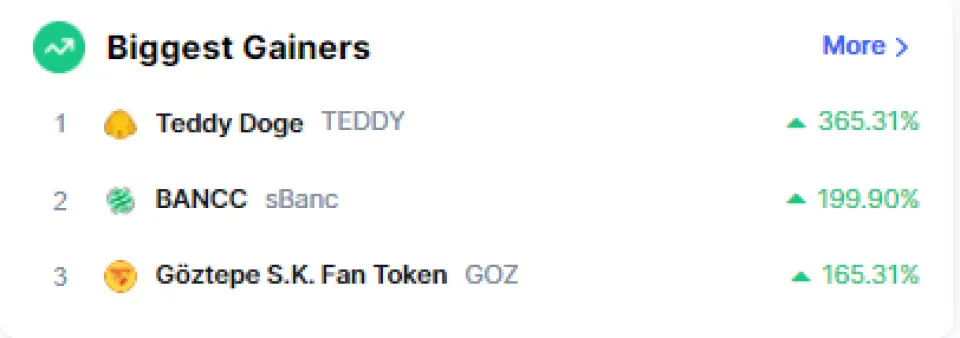 Ünlü kripto para listelemesi olan CoinMarketCap'te en fazla kazandıran listeleme bölümünde Göztepe Fan Token 3. sırada bulunuyor.