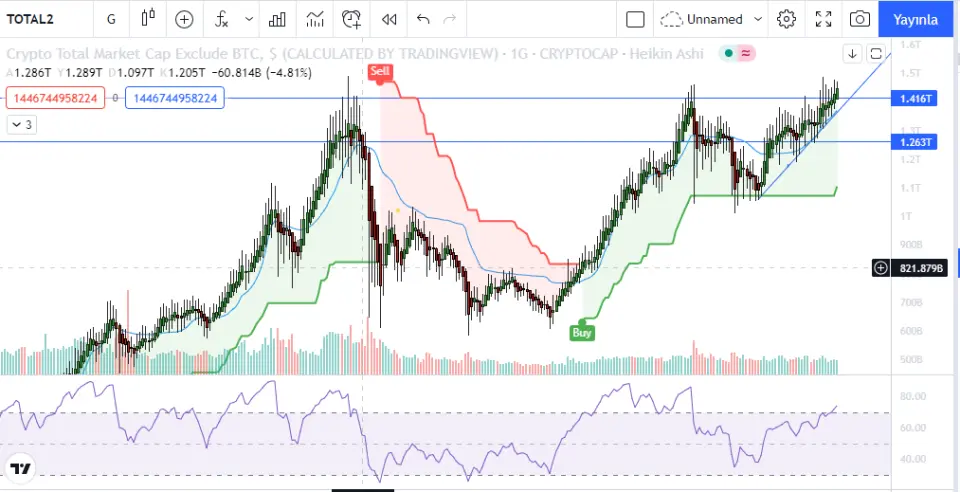 #total2 günlükte bırcok kez test edip kıramadığı 1,416 seviyesini kırdı üstünde kaldığı surece senaryo olumlu acaba #ALTSEASON baslıyor mu??#altcoins #altcoin #altcoinseason2021 #altcoinnews