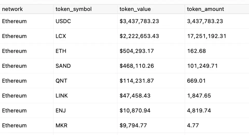 Muhtemel sıcak cüzdan uzlaşması, ETH, USD Coin ( USDC ) ve şirket içi LCX tokeni dahil diğer tokenlar dahil olmak üzere çok sayıda tokenın kaybını duyurduğu için kısa süre sonra borsa tarafından onaylandı .