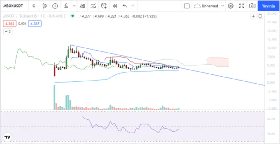 MBOX günlükte düşen trendin üstünde kapanışı 4,5 üstünde gerçekleştirirse 5-5,7 dirençlerini test etmek isteyecektir.