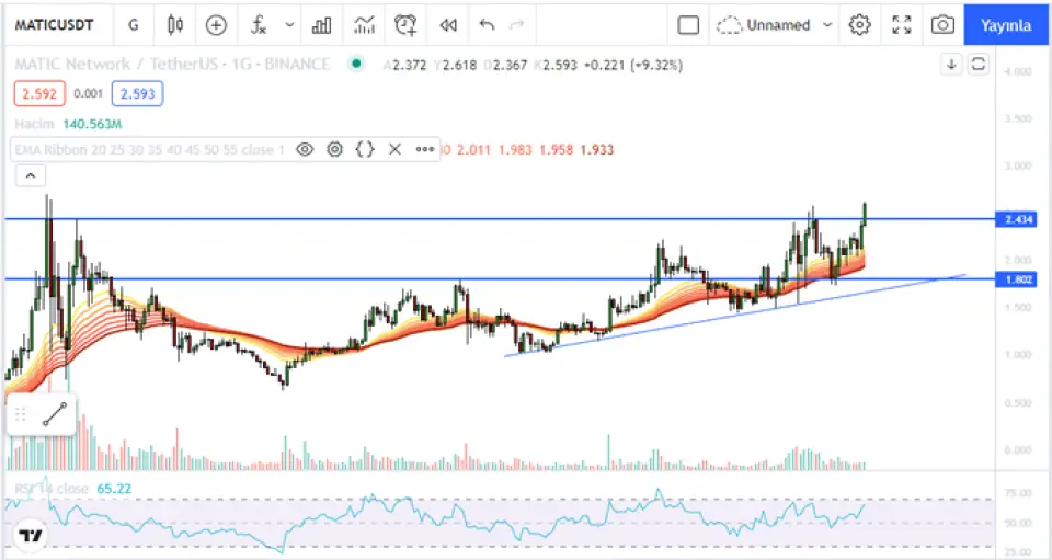 " MATIC 2,43 destek seviyesi satış baskısı olursa sonraki desteği 2,28 seviyesi. 2,70 üstündeki kapanışlar tarihi zirve testi başlatabilir. "