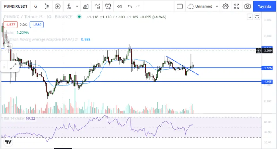 PundiXChain yeterli alış gelemedi yataya bağladı. 1,52 üstü kapanışlar yön yukarı ilk hedef 2,13.
