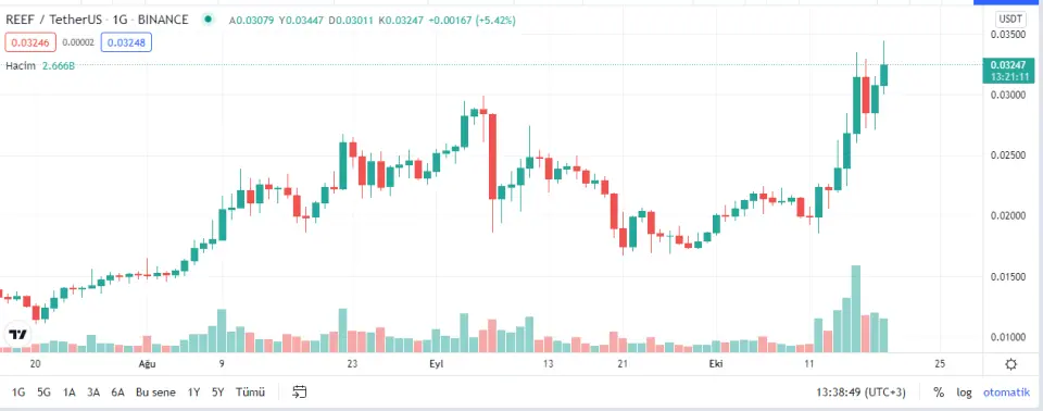 Kripto para ekosisteminde büyük borsa listelenmeleri, ilgili kripto paraya ilginin yoğunlaşmasını ve hareketli saatler yaşanmasına neden oluyor. REEF, Türk kripto para yatırımcıları arasında bir hayli popüler. Kripto uzmanları, fenomenleri ve ünlüleri Reef Coin’i sıklıkla gündeminde bulunduruyor.