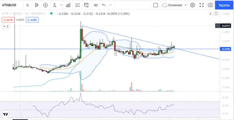 Günlükte düşen trendini kırmış olan UTRUST Coin retest yapmış durumda 0,41 altındaki kapanışlarda senaryo olumsuza dönebilir.