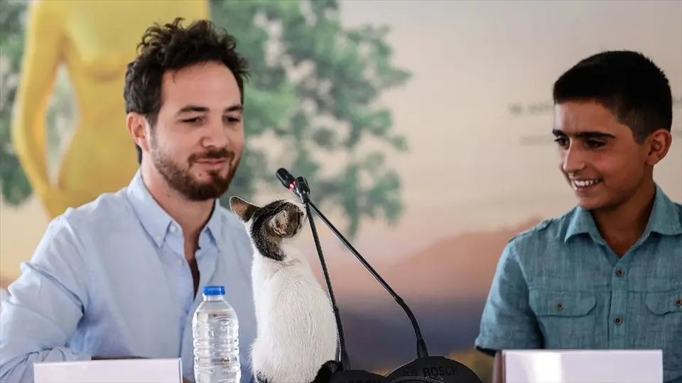Öte yandan, söyleşinin yapıldığı alanda bulunan kedinin, yönetmen ve oyuncuların platformuna çıkarak gezinmesi gülümsetti. Masada mikrofonların arasından geçerek her oyuncunun yanına giden kediyi, konuşmacılar bir süre sevdi.
