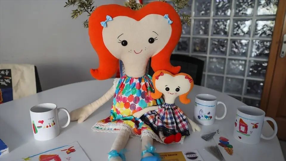 İzmir'de 6,5 yaşında hayatını kaybeden Gizem'den yadigar kalan kalpli bebek resimleri, İzmir İş Kadınları Derneğinin projesiyle oyuncak bebek ve hediyelik eşyalara dönüştürül&uu...