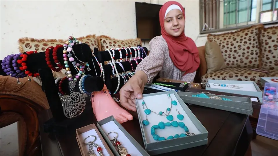 Filistinli küçük kız, salgın sürecinde evde ürettiği takı ve aksesuarlarla iş hayatına atılmaya hazırlanıyor