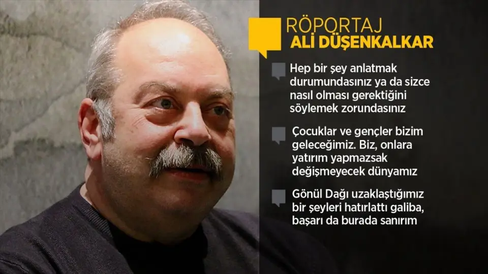 İSTANBUL(AA) - "Baba Evi", "Hanımın Çiftliği", "Muhteşem Yüzyıl Kösem’" ve "Gönül Dağı" adlı dizilerle, "İstanbul Kanatlarımın Altında", "Kaç Para Kaç", "Çamur", "Korkuyorum Anne", "Devrim Arabaları", "Osmanlı Cumhuriyeti" ve "Ay Büyürken Uyuyamam" adlı filmlerde rol alan oyuncu Ali Düşenkalkar, "Sorumluluk, sadece sanata karşı değil, insana karşı da öyle. Sanat benim için bu anlamda araç olarak kullanılabilir. İnsana karşı da her zaman nefes alıyorsak sorumluluğumuz vardır. Ben sadece bu kapsamda sanırım tiyatroyla buluştuğum ve bu yapıda bir kültürde ders aldığım için böyle düşünüyorum." dedi.