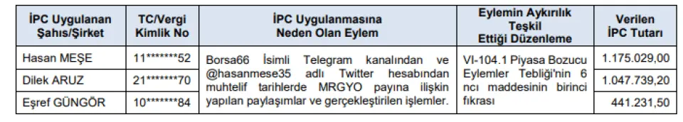Hasan Meşe SPK ceza kararının detaylarına göre Bülten'de şu bilgilere yer verildi