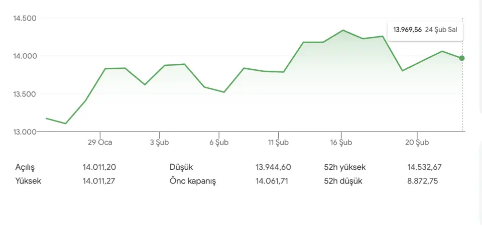 | Önceki Kapanış (Tahmini) | 14.061,82 |