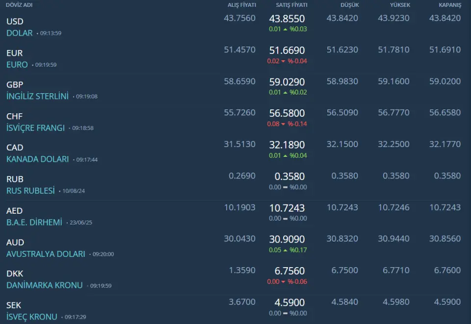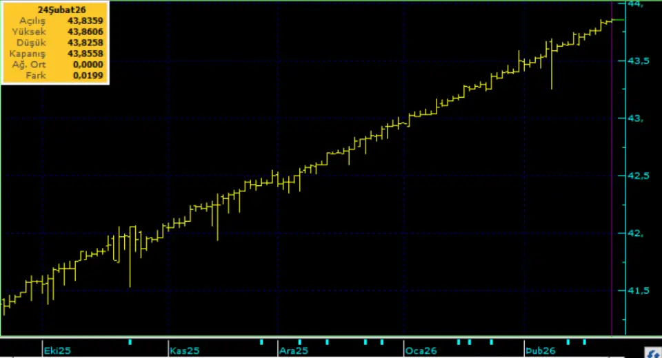 Bu sabah 43,85 civarında işlem görüyor. Aşağıda 43,00 ve 43,20; yukarıda 44,00 ve 44,50 öne çıkan teknik seviyeler.