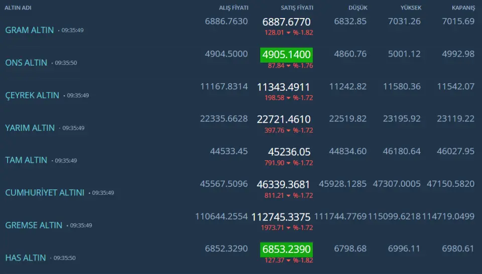 Kapalıçarşı Altın fiyatları