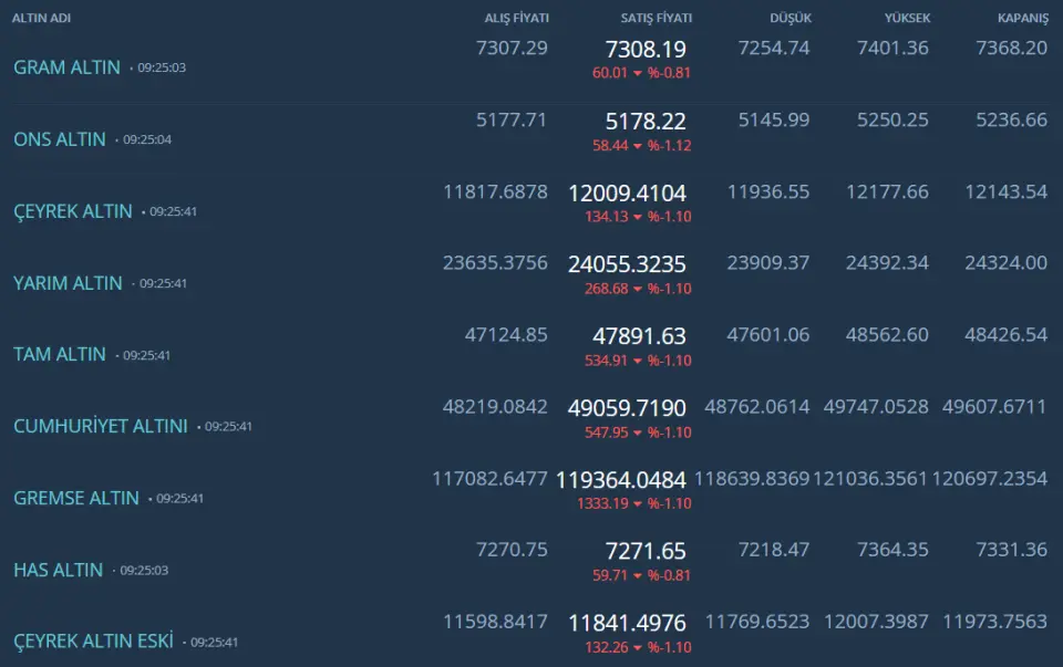 Kapalıçarşı Altın fiyatları