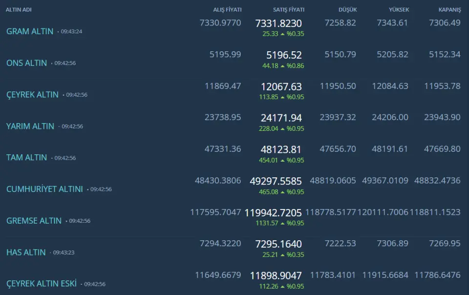 Gram Çeyrek Altın Kapalıçarşı Fiyatları 26 Şubat