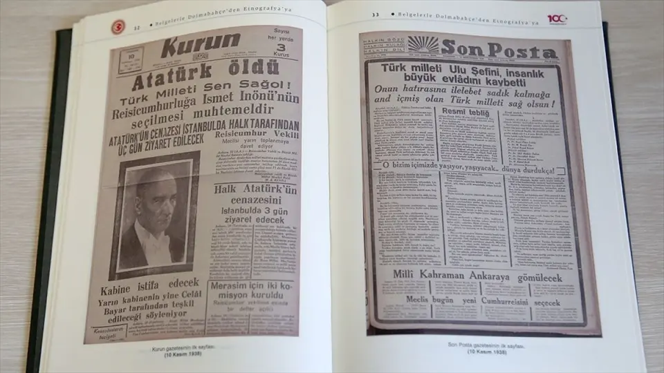 TBMM ile Cumhurbaşkanlığı Devlet Arşivleri Başkanlığının ortak çalışmasıyla hazırlanan "Belgelerle Dolmabahçe'den Etnografya'ya" adlı eserde, Atatürk'ün hastalığıyla ilgili Cumhurbaşkanlığı Genel Sekreterliğince ilk resmi açıklamanın yapıldığı 30 Mart 1938'den naaşının geçici olarak koyulduğu Etnografya Müzesi'nde 21 Kasım 1938'de düzenlenen cenaze törenine kadar geçen süreç ayrıntılarıyla aktarıldı.