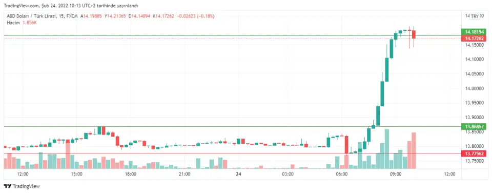 Dolar yükselmeye başladı! Rusya ve Ukrayna arasında olan gerilim bütün piyasaları etkiliyor. Ekonomiyi büyük ölçüde etkileyen savaş sonrası Rusya döviz işlemlerini durduğunu açıkladı. Rusya’nın Ukrayna’ya işgalinin başlamasının ardından Rus Borsasında ve rublede görülen değer kayıpları nedeniyle işlemler geçici olarak durduruldu. İşlemler daha sonra yeniden başladı. MOEX borsası işlemlerin başlamasının ardından yüzde 28 ile tarihi düşüş kaydetti. Gelişmelerin ardından Rusya Merkez Bankası Döviz piyasasına müdahale edeceğini açıkladı.