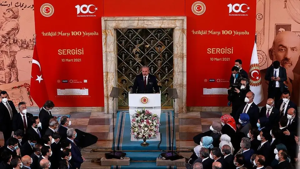 "Meclisimizde bulunan tüm siyasi partilerin ortak kararıyla 2021 yılını ‘İstiklal Marşı Yılı’ olarak ilan etmemize binaen milli iradenin temsil yeri olan Meclisimiz, aziz şairimize ahde vefasının bir gereği olarak, onu her yönüyle gelecek nesillere tanıtacak çalışmalar yapmayı planladı. Aziz Şair’in Türk milletinin gönlünde hak ettiği özel yeri göstermesi, milletimizin ona şükran duygularını ifade etmesi ve ahde vefasının nişanesi olması arzusuyla Mehmet Akif Külliyatı, kitapları, sergileri, belgeselleri ve filmleri hazırladık. Bugün de O'nun aziz hatırasını yaşatmak için büyük emeklerle hazırlanan 100. Yılında İstiklal Marşı Özel Sergisi’ni açmak için bir aradayız.”