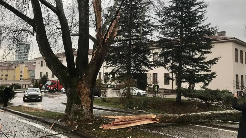 TBMM(AA) - TBMM yerleşkesi içerisinde refüjdeki çınar ağacına yıldırım isabet etmesiyle birlikte kopan parça, kapalı otoparka girmek üzere olan bir aracın üzerine düştü. Araçta maddi hasar oluştu.