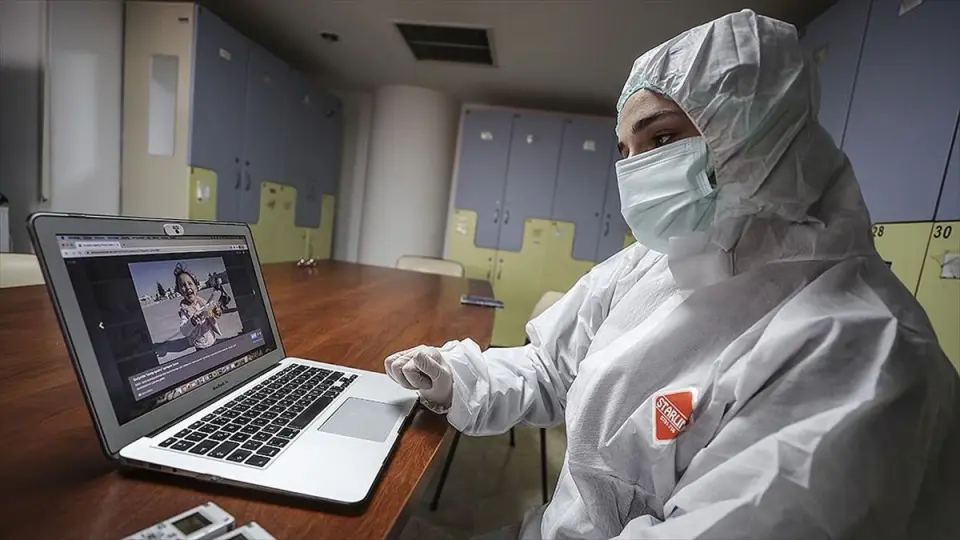 Ankara Şehir Hastanesi Acil Tıp Kliniği Eğitim Görevlisi ve Acil Pandemi Sorumlusu Doç. Dr. Gülhan Kurtoğlu Çelik, filyasyonda görevli olarak çalışan Diş Hekimi Şükran Ayran ve Ankara Şehir Hastanesi Acil Servis Kırmızı Kovid Birimi Sorumlu Hemşiresi Handan Karakulak, AA'nın düzenlediği "Yılın Fotoğrafları" oylaması için AA foto muhabirleri ve muhabirlerinin yurt içi ve dışında çektiği, "haber", "yaşam" ve "spor" kategorilerindeki fotoğrafları inceledi.