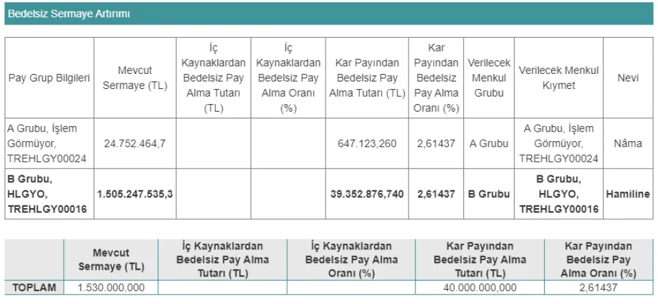 HALK GAYRİMENKUL YATIRIM ORTAKLIĞI A.Ş. HLGYO şirketinin yaptığı KAP açıklamasına göre;