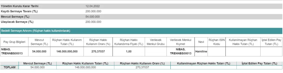 Nibas %270 rekor bedelli sermaye artırımı kararı!