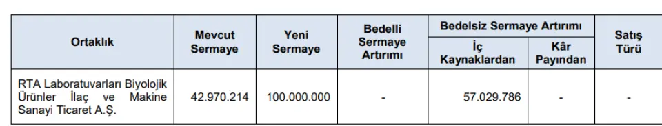 Şirketin Yönetim Kurulu'nun 16.03.2022 tarihli özel durum açıklamasıyla kamuya duyurulan, 100.000.000 TL kayıtlı sermaye tavanı dahilinde 42.970.214 TL olan çıkarılmış sermayesinin, tamamı iç kaynaklardan karşılanmak suretiyle 57.029.786 TL (%132,72 oranında) artırılarak 100.000.000 TL'ye çıkarılmasına ilişkin başvuru kapsamında, Şirketimizin 27.05.2022 tarihli Yönetim Kurulu kararıyla, iç kaynaklardan karşılanacak olan 57.029.786 TL tutarındaki sermayenin 31.061.646,83 TL tutarındaki kısmının emisyon primlerinden, 25.968.139,17 TL tutarındaki kısmının ise geçmiş yıllar karlarından karşılanmasına karar verilmiştir.