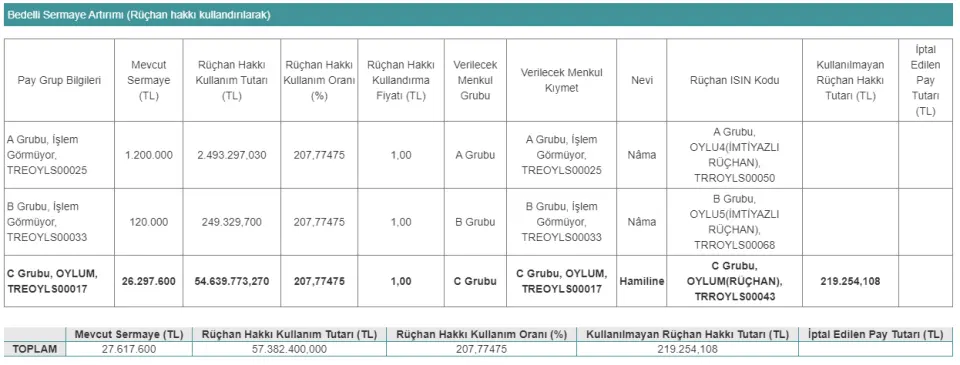 OYLUM SINAİ YATIRIMLAR A.Ş. OYLUM şirketinin yaptığı KAP açıklamasına göre;