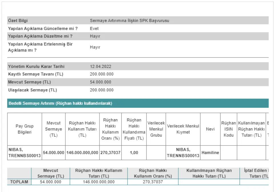 Bu şirketten %270 sermaye artırım kararı Niğbaş tarafından yayınlanan KAP bildirisinde şu bilgilere yer verildi