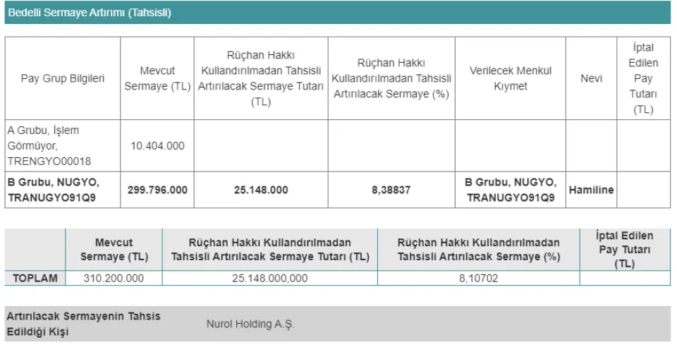 Nurol Holding A.Ş. #NUGYO Yapılan KAP açıklamasına göre;