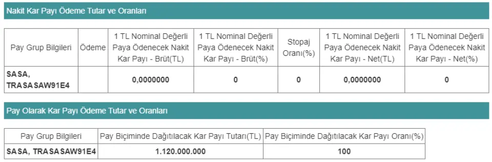 -Vergi Usul Kanunu hükümlerine göre hazırlanan yasal kayıtlarımız esas alındığında ise; yasal kayıtlarımızda yer alan 1.361.801.286,34 TL Net Dönem Kârından Vergi Usul Kanunu hükümlerine uygun olarak 64.854.990,83 TL Genel Kanuni Yedek Akçe (1.Tertip) ayrılmasına, kalan 1.236.655.724,70 TL Net Dağıtılabilir Dönem Kârının 112.244.825,84 TL'sinin Olağanüstü Yedek olarak ayrılmasına ve kalan 1.120.000.000,00 TL tutarındaki Net Dağıtılabilir Dönem Kârının Birinci Kâr Payı (Bedelsiz) olarak dağıtılmasına;
