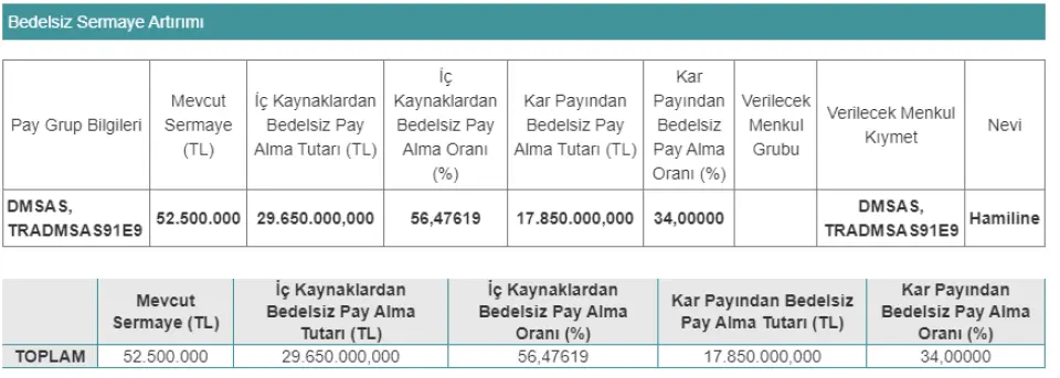 DEMİSAŞ DÖKÜM EMAYE MAMÜLLERİ SANAYİ A.Ş. DMSAS şirketinin yaptığı KAP açıklamasına göre;