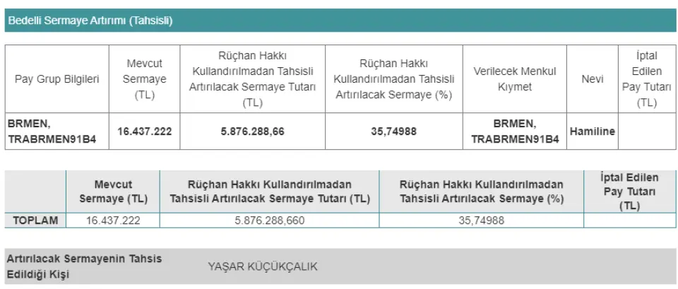SPK onay verdi BRMEN sermaye artırımı yapıyor!