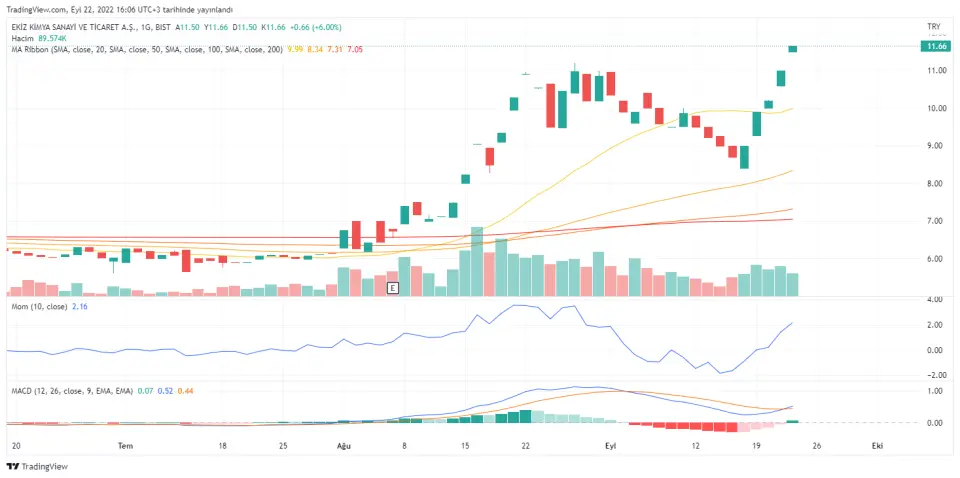 Hisse hareketine 1 Ağustos tarihinde hareketine başlayarak hızlı bir şekilde yükselişe başladı. Tedbir geldikten sonra hissede bir düşüş başladı ve son 5 gündür hisse ralliye kalkarak hızlı bir şekilde primlenmeye başladı. Hisse şuan 11,66 TL'den işlem görüyor. Tedbirin kalkması sonrası hissede ne gibi değişiklikler olacak merak konusu.