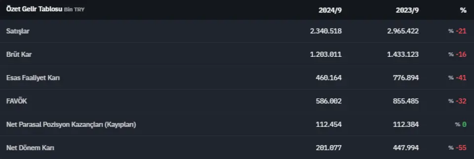 Şirket, 2024 yılının üçüncü çeyreğine ait özet gelir tablosunu ve bilançosunu açıkladı. Detaylar haberin devamında...