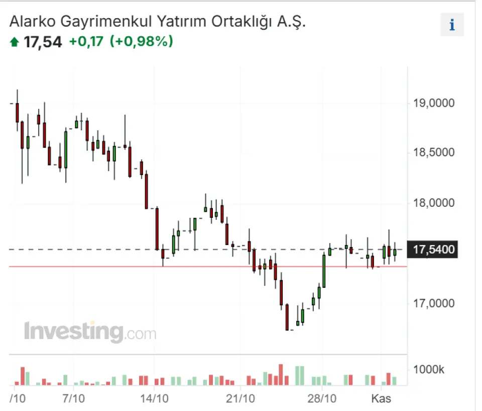 ALGYO 1 YILLIK, 6 AYLIK, 1 AYLIK DEĞİŞİM GRAFİĞİ
