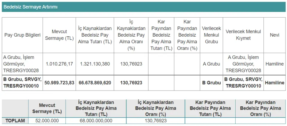 Bedelsiz sermaye artırım kararı geldi hangi şirket?