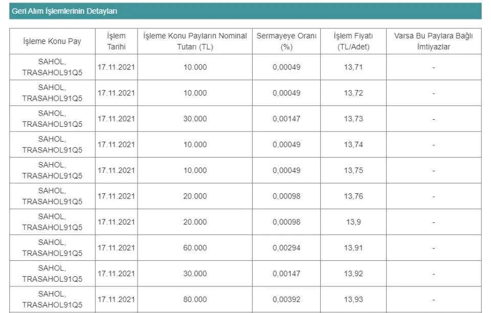 Geri Alım İçin Ayrılan Fonun Toplam Tutarı (TL): 100.000.000