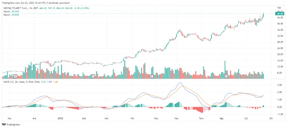 Hisse 2021 Aralık 31'de kapanışını tam 5,34 TL'den yaptı. O günden bu yana yükseliş oranı hesaplanan hisse şuan kendisine yeni tarihi zirveler yapıyor. Bugün gördüğü en yüksek seviye 44,56 TL olan hisse tam %707 oranında primlendi. Hisse bugün %+5,20'nin üzerinde primleniyor. Hissede hacimler devam ediyor.